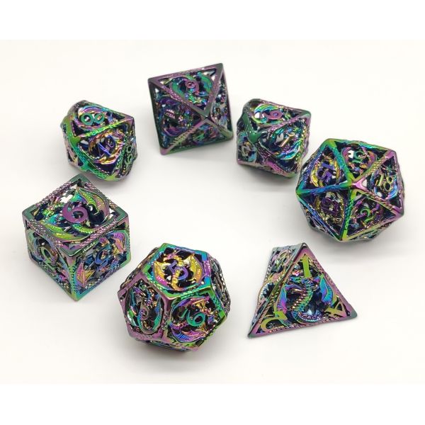 Complete set of seven sharp-edged polyhedral dice, hand poured, polished and sanded to extraordinary fineness.Hand-made, hand-sanded, hand-polished sharp-edged dice.Seven polyhedral dice.Hand-made and hand-engraved. Recommended for use in dice trays.