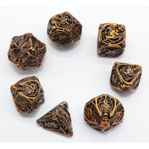 Complete set of seven sharp-edged polyhedral dice, hand poured, polished and sanded to extraordinary fineness.Hand-made, hand-sanded, hand-polished sharp-edged dice.Seven polyhedral dice.Hand-made and hand-engraved. Recommended for use in dice trays.